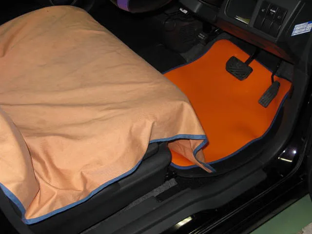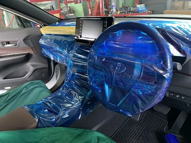 車検のコバック十和田店(プロスタッフ)では作業の大小にかかわらずお自動車の修理、車検で預かりしたお車は細心の注意を払ってお取り扱いいたします。座席にはシートカバー、足元にはフロアマットの使用を徹底しています。また取り外した部品等も極力、工場の床へ時下置きしないようにしています。今後はハンドルにもハンドルカバー装着を徹底予定です。