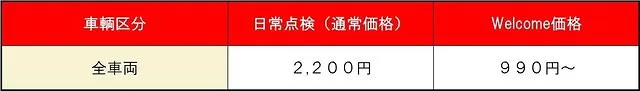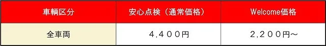 Welcome料金とはお客様ご自身お車を当店にお持込頂いた場合のお得な料金です。(5,500円~)