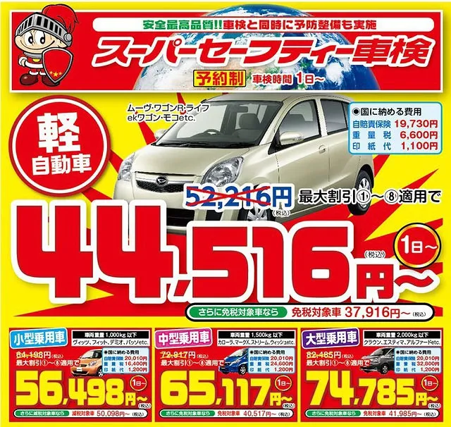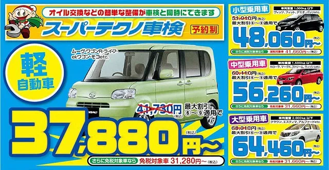 軽整備が同時に可能な車検(点検コースとなります)