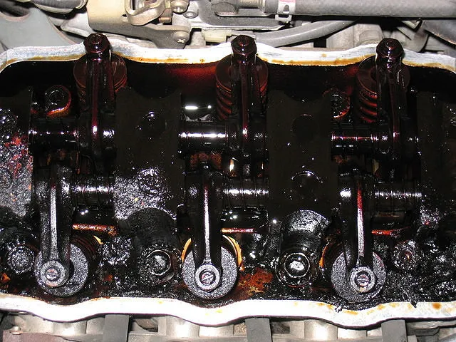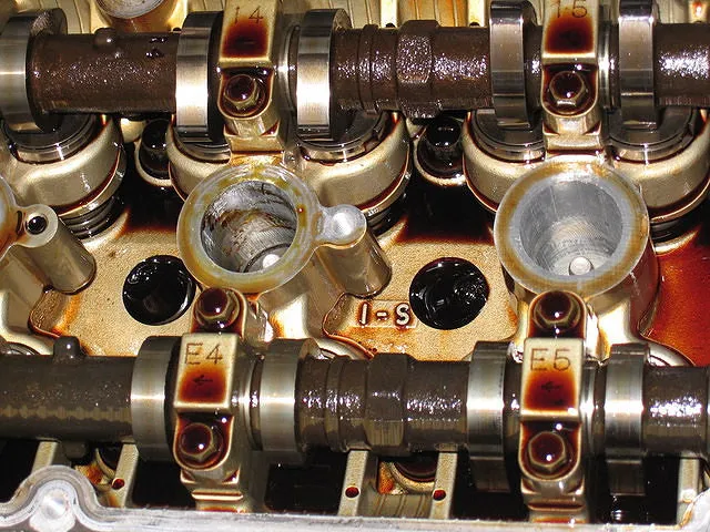 ①オイルはエンジンの熱で加熱され、酸化し変質します。酸化により粘度が上昇し、オイル内の添加剤が変質、性能が低下、さらに熱によりススと水分、異物の混入によりスラッジが発生します。